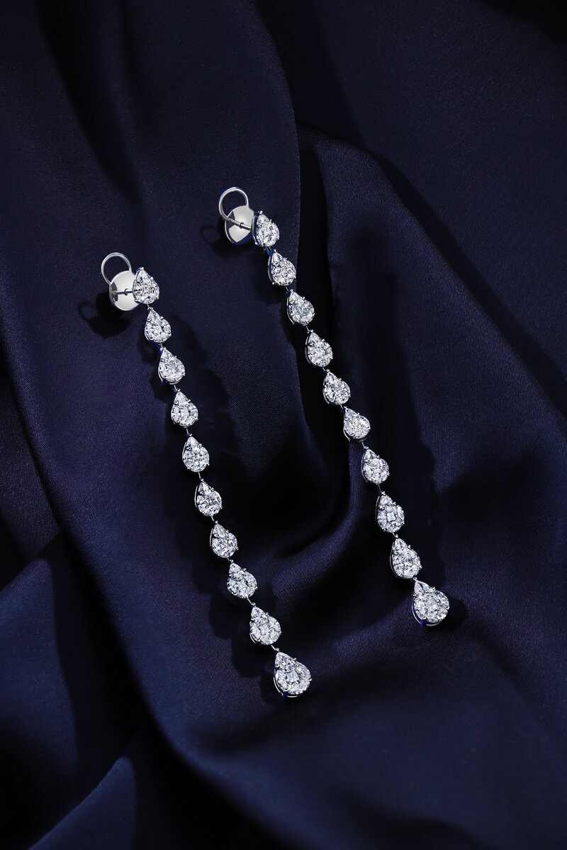 Свадебные тренды стремительно сменяют друг друга, однако, большинство невест все еще мечтают о классике. Современной классике. Традиционная церемония передает ту самую атмосферу сказки, о который с детства мечтала каждая девочка. В моде всегда остаются светлые чувства, теплые объятия и безупречные бриллианты. Такие, как в MIUZ Diamonds. Серьги из коллекции Le Chic Мода на минималистичные свадебные платья, порой и вовсе напоминающие легкие комбинации, позволяет сделать акцент на украшениях, сохраняя лаконичность образа. Удлиненные серьги, ниспадающие вдоль линии шеи – именно то украшение, которое способно подчеркнуть сияние глаз счастливой невесты. Каплевидная форма бриллиантов выглядит элегантно и добавляет нотку символизма, подчеркивая искренние чувства невесты, чистые, словно капли кристальной воды из горного родника. Безупречный каскад драгоценных капель, каждая из которых состоит из нескольких бриллиантов, будут восхитительно сиять в ответ на вспышки фотокамер и свет софитов. А ка