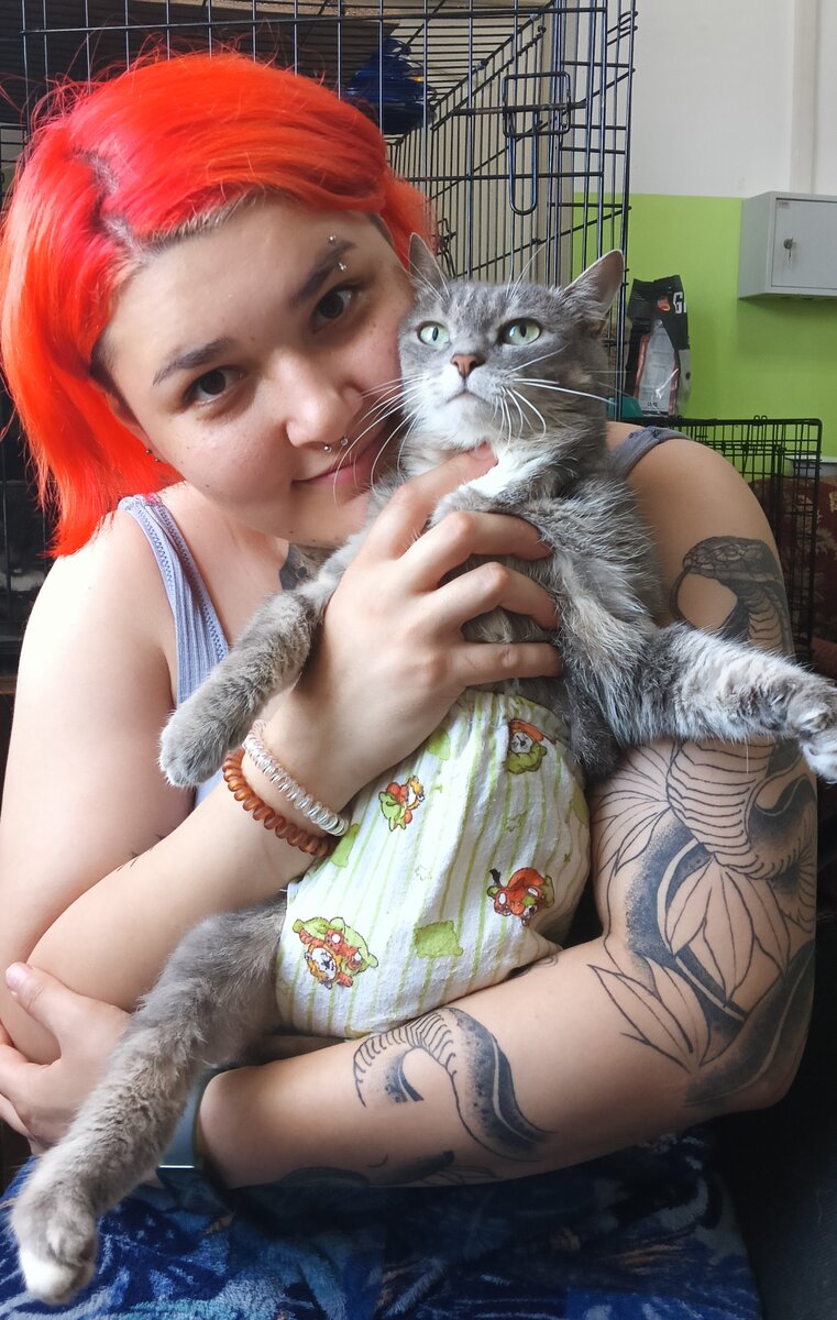 Её года 2 назад, рядом со своим подъездом нашла женщина. Позвонила нам, сказала что у кошки проблема с лапой и она не ходит. Мы тут же отреагировали и увезли её в клинику Айболит. Предположительно её покусала собака, тем самым травмировав лапу и позвоночник. Лапу долго пытались сохранить, но когда на лапе появилась гангрена, её пришлось ампутировать. Она долго находилась на стационаре в клинике, сейчас же она живёт в центре реабилитации Теремок. Лаки жизнь всегда преподносила сюрпризы, то цистит, то её бедную откачивали из за проблем с почками,пролежни... И только в Теремке она почувствовала себя как дома... 2 разовое питание, массаж, необходимое лечение,личные комбенизончики и купание каждый день. Мы долго боролись за её жизнь и сейчас очень боимся её потерять, в прочем как и всех наших подопечных. К сожалению до недавнего времени кошкам спинальникам грозил вирус лейкоза, который предположили из за 2 смертей наших котиков от онкологии. Взяли анализы на вирус лейкоза а та