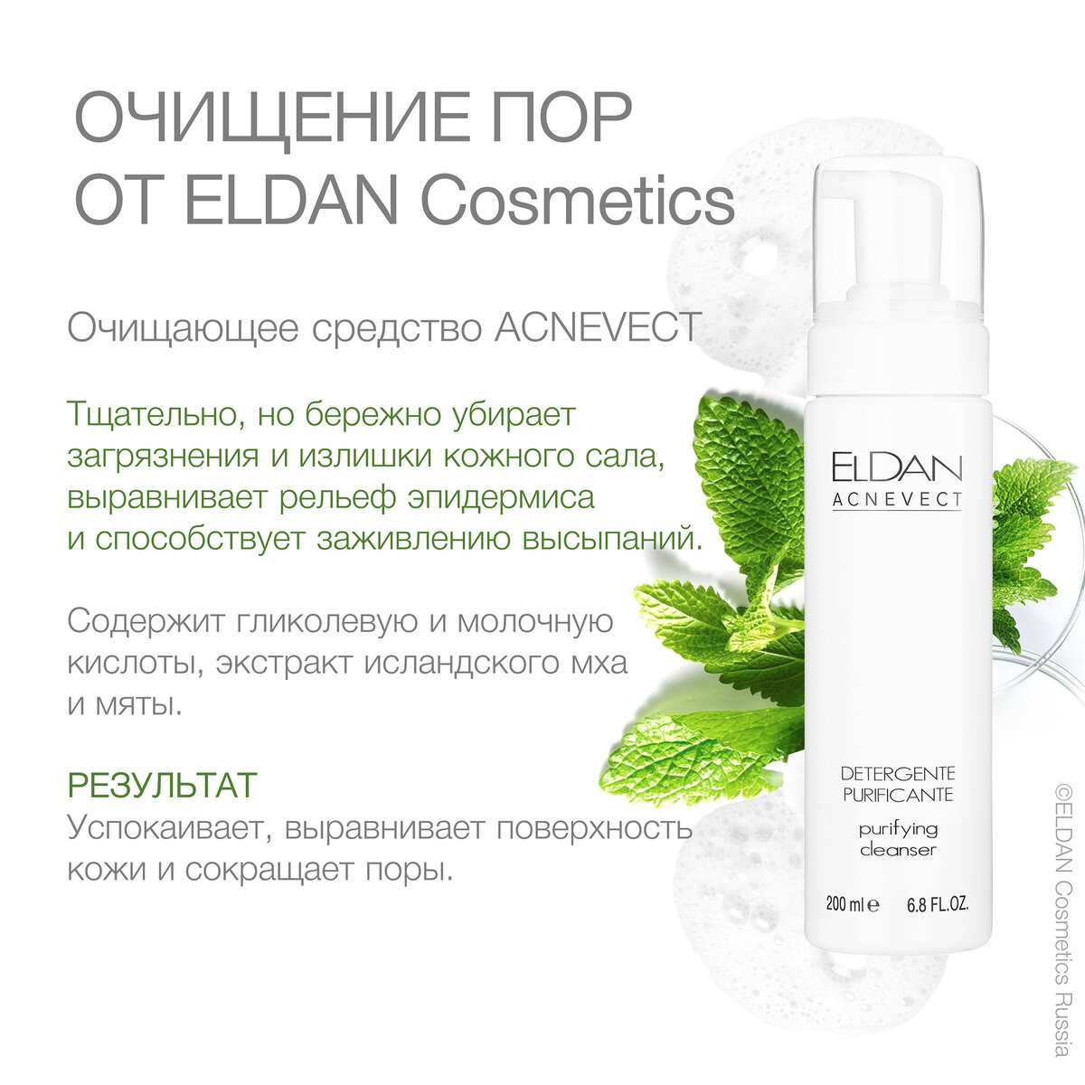 ✨Обложки глянцевых журналов, фотографии звезд и блогеров в Инстаграме с применением фильтров и масок показывают нам идеальных людей, кожа которых не имеет морщин и расширенных пор, однако в реальной жизни так не бывает. ❕Визуально заметные поры — норма, это внешние отверстия сальных и потовых желез, которые особенно различимы у обладателей жирной, комбинированной или проблемной кожи. Основные локализации в так называемых «себорейных» зонах: Т-образная зона лица (лоб, нос подбородок), на теле - грудь и верхняя часть спины, именно там расположено наибольшее количество сальных желез. 🧬Однако очистить поры, сделать их менее заметными и уменьшить количество комедонов все-таки возможно, но реальный эффект дают только регулярные посещения косметолога и грамотно подобранный ежедневный уход с учетом ваших индивидуальных особенностей: 💧1. Для бережный демакияжа и умывания 2 раза в день утром и вечером, подойдет очищающее средство для проблемной кожи (ELD-130) от @eldancosmetics - хит продаж! Э