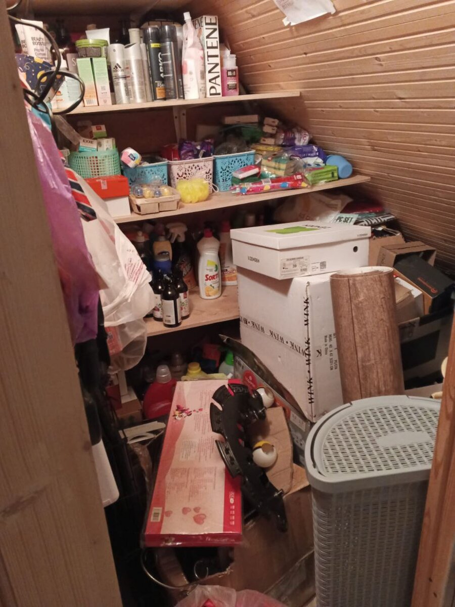 И вновь к нам постучали подписчики. Из Подмосковья. У них даже не квартира, а целый дом. И там тоже сейчас расхламление! А началось все с кладовки, конечно. Ну а куда еще можно отправить ненужное? Чумодан в тележке я читаю чуть ли не с первых дней появления канала в ТГ. Тут и рецептики хороши – дома опробовала несколько блюд, и лайфхаки интересные бывают. Я даже в порыве вдохновения прикупила себе разных штуковин для хранения. Вещи по органайзерам разместила, крючочков накупила, чтоб вешалку на вешалку разместить. Теперь в шкафах стало просторнее. Ну и очередная статья по расхламлению сподвигла начать разбирать хлам. Откуда начать? Да с самого захламленного уголка, конечно, с кладовки. Чего тут только не завалялось! Старый чемодан со сломанным колесиком, коробка от пылесоса и микроволновки, старые подушки и одеяла, старые обои и куча других вещей. Зачем их оставляла? Ну, типа, на черный день… Все это барахло распихала по коробкам и отправила на мусорку. Все нужное – средства для стирк