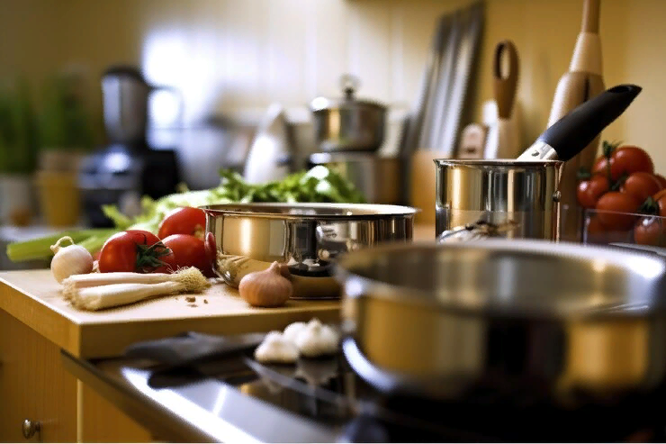 - бытовые приборы для облегчения готовки - микроволновка, мультиварка, хлебопечка, список можно продолжать, количество "помощников" зависит от уровня дохода, в основном;