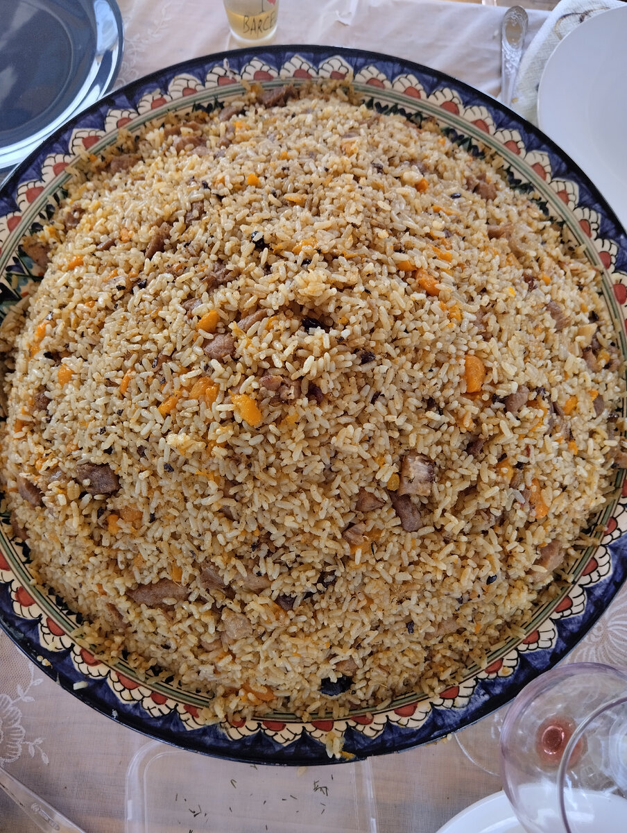 Пловчанский любят все, и моя семья то же. Отличное блюдо для большой компании. Главное правило это: все по равной доле. Что вам надо: Лук, морковь (берите лучше оранжевую), мясо, рис - 1 кг. Да все верное, все по одному килограму. Специи каждый выбирает себе сам. Я же доверяюсь профессионалу и беру приправу у моего знакомого на рынке. Вообще всем советую закупаться на рынке, очень полезная привычка, особенно заводить знакомства, и тогда тебе будет доставаться всегда свежий и качественный продукт. В казане разогрейте масло и жарьте на нём мясо. Уберите мясо на сито. В этом же масле (если мало то добавьте масло) обжарьте лук и морковь. Каждый ингредиент должен быть обжарен отдельно. Когда последний ингредиент будет обжарен верните всё в казан, и засыпте все специями. Залейте водой, и тушите 1-2 минуты. Добавьте рис и закройте крышку. Периодически помешивая, а в конце формируйте курган. Не забудьте добавить головку чеснока когда добавите рис. Он сделает блюдо более насыщенным.