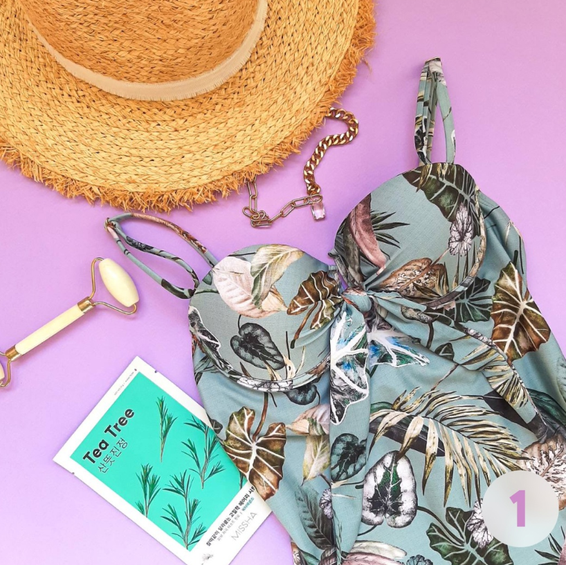 Купальник с тропическим орнаментом, соломенная шляпа, массажёр для лица и элегантное колье — вы точно знаете, куда ведёт ваша путеводная звезда.