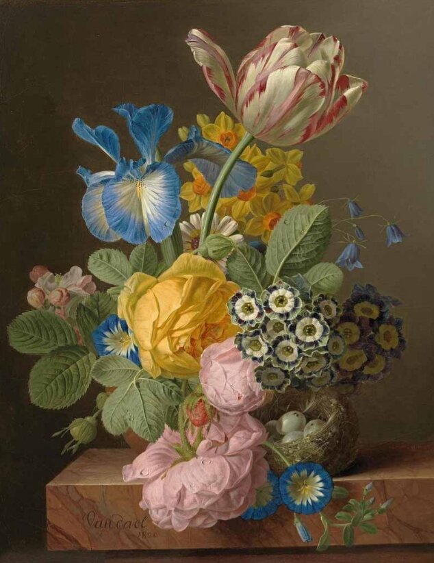 Родился Жан Франсуа во второй половине 18 века, если точнее –в 1764 году в Антверпене (Бельгия). С юных лет мальчик проявлял тягу к искусству, поэтому в 1776 году поступил в Королевскую академию изящных искусств в Антверпене, где изучал архитектуру. Уже в то время молодой человек не на шутку увлекался живописью. Закончив учебу, Жан Франсуа ван Даль перебрался на постоянное жительство в Париж, где начал карьеру декоратора. Именно здесь он познакомился с самим Жераром ван Спаендонком, который на тот момент был профессором цветочной росписи в Ботаническом саду и чуть позже был избран членом Академии изящных искусств. Он оказал огромное влияние и воодушевил Жан Франсуа на увлечение цветочной живописью. Известно, что в 1793 году он приобретает жилье в Лувре, рядом со своим наставником. Жан Франсуа был настолько увлеченным и трудолюбивым, что успех не заставил себя долго ждать. Картины художника пользовались немалой популярностью у ценителей высокого искусства. Даже монаршие особы, в числе