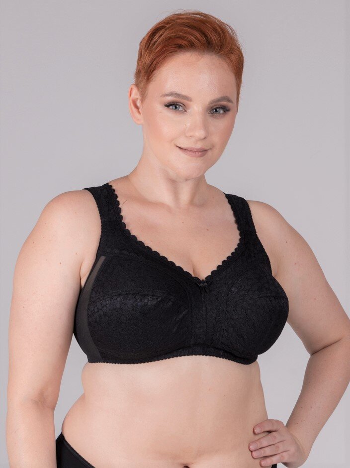 Бюстгальтер из дублированного хлопком кружевного и эластичного полотна, без каркасов. Бретель дублированная, на поролоне.