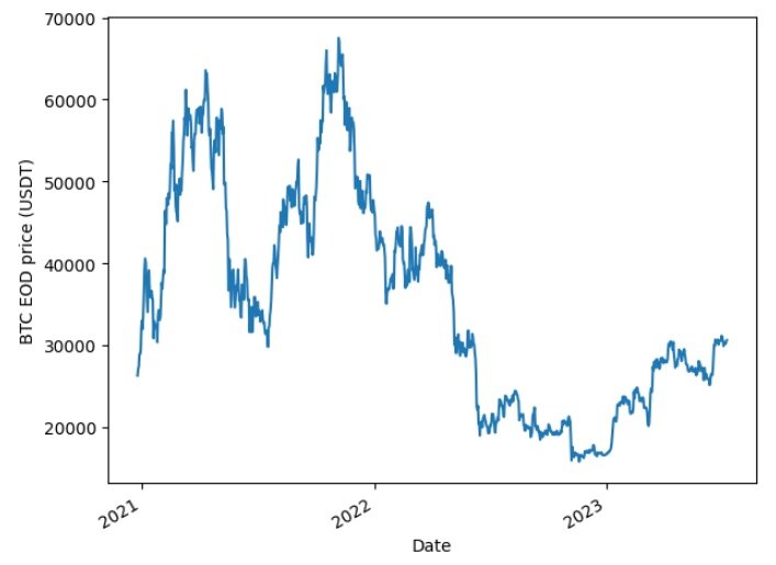 Насколько я припоминаю, про историю проникновения концепции случайного блуждания в финансовую математику я уже писал достаточно подробную и развеселую статью, помимо этого, не так давно я выкладывал Python код с пояснением, посредством которого вы лично могли убедиться, насколько временной ряд полученный совершенно случайно может напоминать график движения биржевого актива со всеми присущими ему трендами, флетами, фигурами технического анализа, волнами Эллиота, уровнями Фибоначчи и стохастиками. А теперь пришло время взглянуть на то, как концепция случайного блуждания может помочь нам в прогнозировании будущих цен биржевых активов. Ну и попутно ввести в наш оборот несколько понятий которые понадобятся нам в дальнейшем. Давайте представим себе что мы планируем приобрести на бирже крипто деривативов АЕ несколько фьючерсов ВТС, предполагая что курс ВТС будет расти и такая покупка принесет нам прибыль. Использовать в наших исследованиях мы будем тот-же набор данных (цены закрытия дня ВТС)