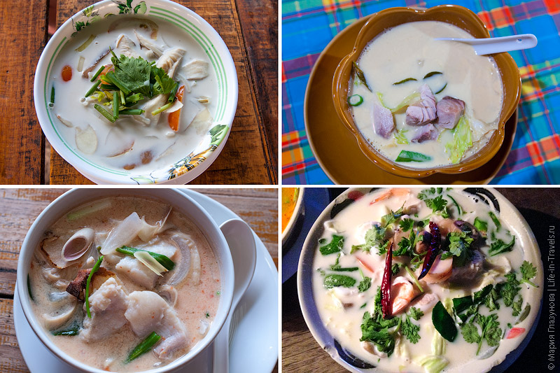 Чтобы влюбиться в тайскую кухню – не обязательно долго жить в Таиланде, достаточно попробовать несколько блюд, и вкус лемон грасса, галангала, кардамона, кокосового молока и перца чили сохранятся глубоко в памяти, а вкусовые рецепторы будут настойчиво требовать добавки. Статья по материалам сценария к ролику. Том Кха (Tom Kha). Сладковатый суп на кокосовом молоке. Это блюдо безумно популярно – не слишком острое, в меру пряное и ооочень вкусное! Том Ям (Tom Yum). Это, пожалуй, самое знаменитое блюдо в тайской кухне, и даже те, кто ещё не был в Таиланде, обычно слышал об этом кисло-остром супе с лемон грассом, галангалом и листьями лайма. Правда, суп в тайском понимании значительно отличается от привычного русскому человеку – в Том Яме можно есть практически один только бульон (ну и мясо/рыбу, если они есть), всё остальное добавляется для создания аромата и малосъедобно. Так как Том Ям – очень острый суп, к нему, чаще чем к другим блюдам, предлагают в качестве добавки рис. Зеленый карри