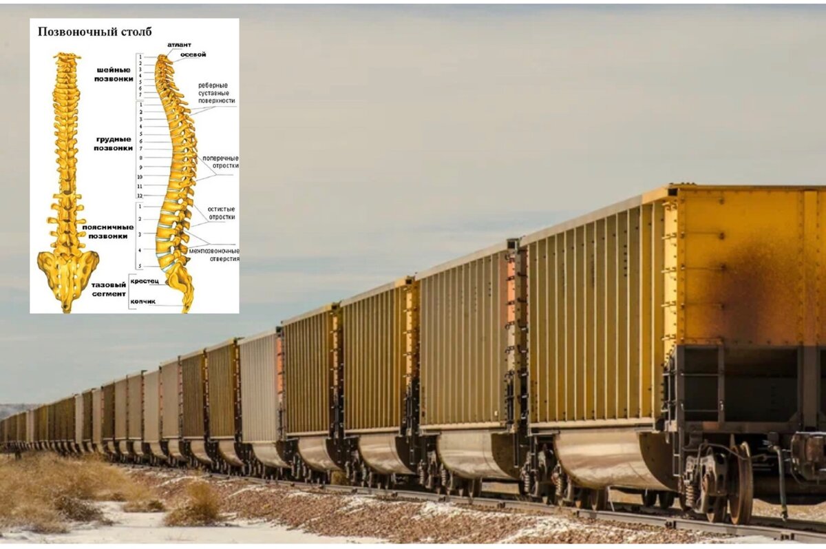 Нетрудно мысленно представить поезд, состоящий из 33 вагонов, подвижно соединенных между собой. Через весь состав протянут стержень, который соединяет каждый вагон. Этот поезд напоминает наш позвоночник, который состоит из 33-х скрепленных плоским суставом позвонков. Между позвонками – эластические межпозвонковые диски – своеобразные буфера, которые смягчают удары. Продолжая сравнение с поездом, представим, что вагоны не были бы оборудованы упругими буферами. В этом случае при любом торможении они наезжали и толкали бы друг друга с такой силой, что езда в таком поезде была бы мучительной. В результате сходных причин такими же мучительными для человека были бы ходьба, бег, прыжки. Позвоночник не только надежная опора скелета, в нем, как в хорошем футляре, хорошо «упрятан» спинной мозг – скопление нервных клеток, в том числе и двигательных, управляющих мышцами. Позвоночник определяет нашу осанку. В шейном и поясничном отделах, он, подобно коромыслу, изгибается вперед – лордоз, а в грудн