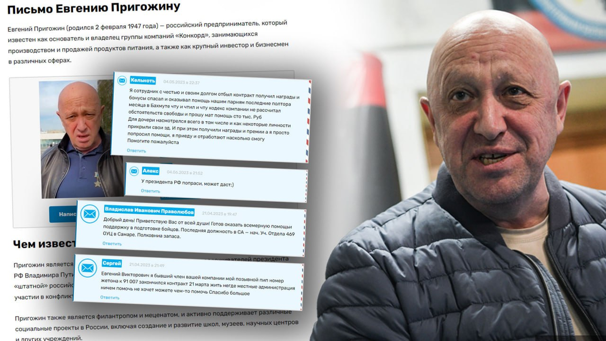 Продолжаю обзор писем, поступивших на сайт публичных сообщений знаменитостям, сообщениями куратору ЧВК «Вагнер» Евгению Пригожину (орфография и пунктуация писем сохранена — прим. ред.). Наряду с восторженными, почти обожествляющими его посланиями есть и немало таких, авторы которых задают Евгению Викторовичу неприятные вопросы. А самое главное открытие, которое позволяют сделать эти письма, — у ЧВК «Вагнер» и Минобороны одни и те же «болезни».