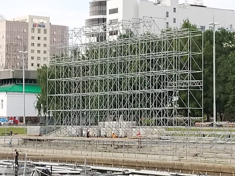 На Плотинке начали монтировать сцену для празднования 300-летия Екатеринбурга. ФОТО