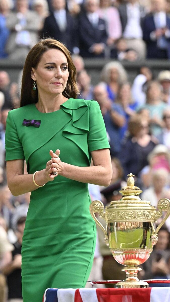 На финал Уимблдона прибыли все звездные поклонники тенниса, в том числе и Кейт Миддлтон. Она вручила чемпиону в мужском одиночном разряде золотой кубок и продемонстрировала безупречное платье Roland Mouret длины миди с коротким рукавом, к которому подобрала лаконичные бежевые лодочки. В выборе цвета монаршая особа разбирается, именно поэтому она отдала предпочтение насыщенному зеленому оттенку, что молодит и придает коже сияние. Читайте также на нашем сайте: Подписывайтесь на нас в Телеграме, чтобы быть в курсе последних новостей!