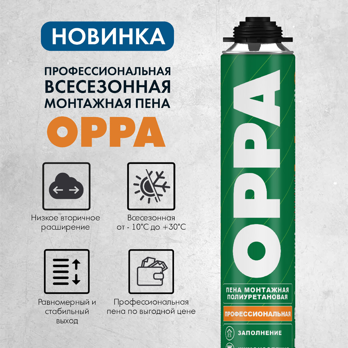 Новинка! Всесезонная профессиональная монтажная пена OPPA, 750 мл