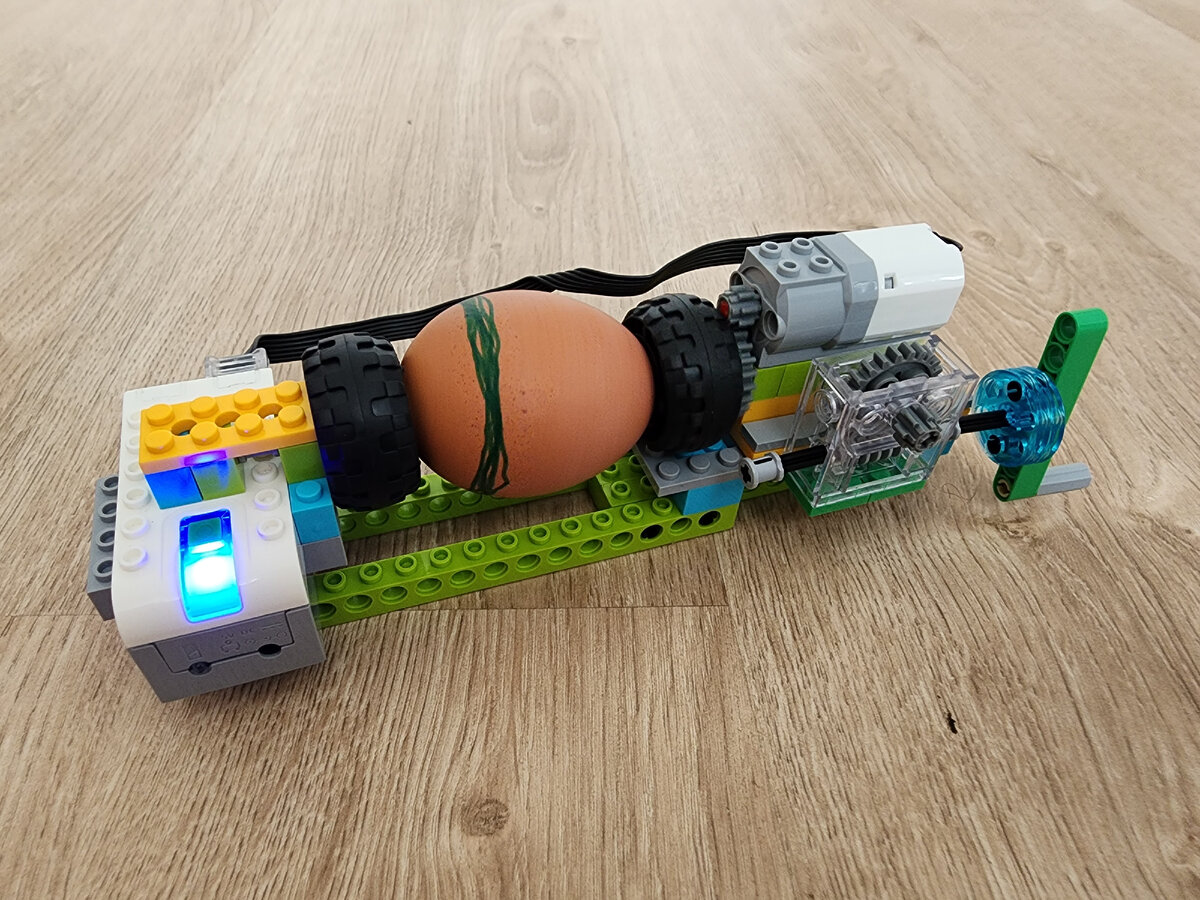 Бывает обидно, когда пасха уже давно прошла, а на глаза попадается такая подходящая к празднику модель. Мы решили не дать ей пропасть из поля нашего внимания. Наш инженер довольно быстро ее собрал. Картинки внушили мне интересные возможности модели. У нее даже виднелся винт подачи каретки. Словом серьезная виделась модель. Однако в реальности все оказалось не так. Все механические премудрости оказались украшениями. При всех неоправданных ожиданиях модель исполняет основное предназначение - крутит яйцо. Тут нас подстерегала вторая проблема. Оказалось, что само яйцо не умеет разукрашиваться. Наш инженер решил исправить этот недостаток самостоятельно. Возможно, мы решите, что собирает он модели лучше, чем рисует на яйцах. А возможно его работа и над моделью и над разукрашиванием покажется отличной. Решайте сами: