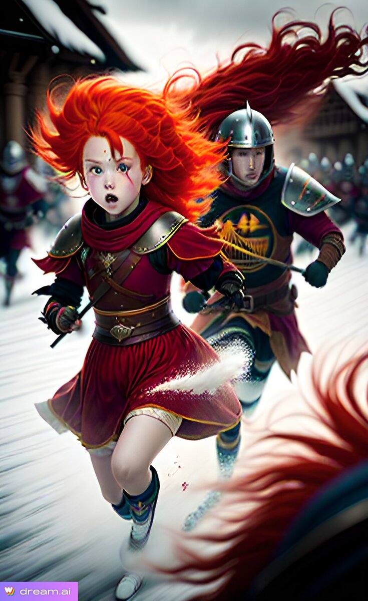 Воины побежали за рыжей.