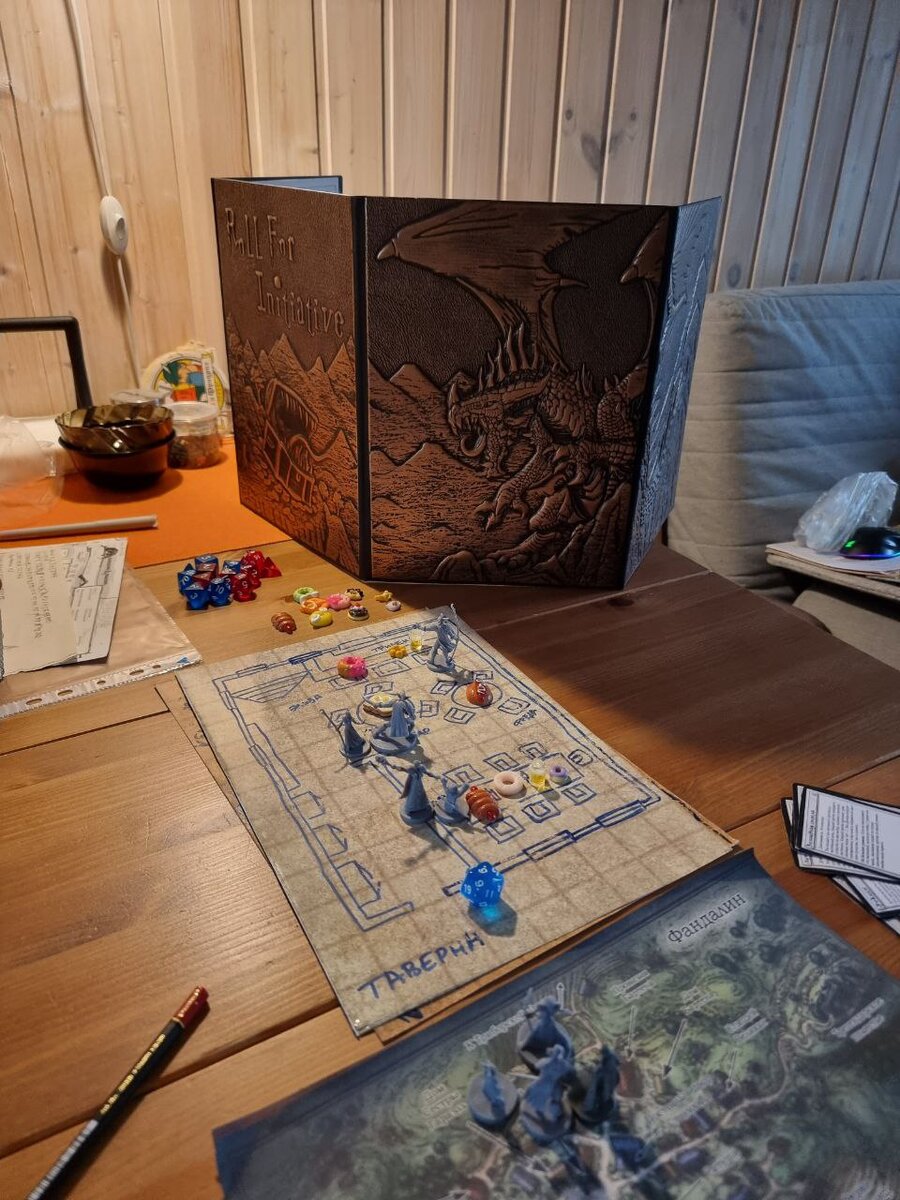 Вот, кстати, можете оценить примеры типичных партий в D&D (на первом фото одна из наших партий). Что удивительно, при отсутствии особой художественной составляющей, игра очень атмосферная. Это как читать книгу без картинок - сам сюжет заставляет погрузиться в историю с головой 🐉