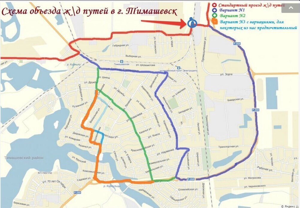 И вот пришло время возвращаться домой и снова проехать через Тимашевск. Теперь то мы уже знаем, что пробку можно легко объехать, хоть и не помним дорогу. Интернет, как говорится, в помощь. И вот такая карта попалась мне.