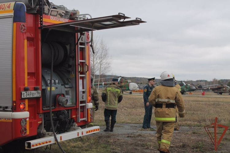 В Екатеринбурге на базе отдельной авиационной эскадрильи Уральского округа войск национальной гвардии состоялся учебно-методический сбор с военной командой противопожарной защиты и спасательных работ аэродромно-технического обеспечения совместно с МЧС России.