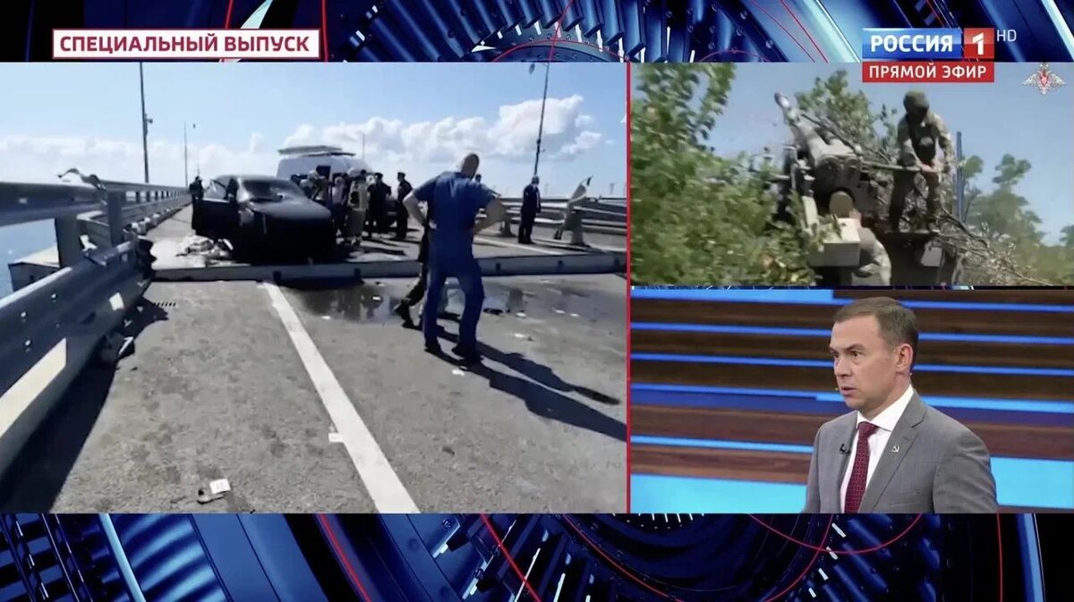 В эфире «60 минут» обсуждали очередной теракт киевского режима, в результате которого был поврежден Крымский мост. Считаю, что атака на мост во многом имеет для Киева символический характер: «контрнаступ» не дает желаемых результатов, надо предъявить своему обществу и западным кукловодам хоть какой-то успех, дать какую-то надежду. Удар по мосту обеспечивает нацистам наибольший информационный эффект, потому что мост – символ воссоединения Крыма с Россией.