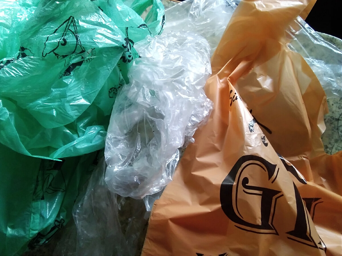 Дорогие друзья! Обращаюсь к Вам с просьбой поддержать подпиской канал моего хорошего друга и просто доброго человека "Титов Андрей - живёт бодрей," , который вынужден начинать все сначала! Все мы можем оказаться в такой ситуации и поэтому, если не трудно, нужно поддерживать друг друга! Большое спасибо!🙏🙏🙏 Здравствуйте, читатель! Итак, выполняя вчерашнее обещание рассказать о вязании сумки из полиэтиленовых пакетов, пишу сегодняшнюю статью. Сразу оговорюсь, что вязальщица я еще та, так, что не судите строго качество!😉 Главное, попробую пояснить нюансы! А если будет все-таки что-то непонятно - спрашивайте в комментариях. Мешочки я использовала самые простые, бесцветные, и только для узора взяла цветные пакеты. Чтобы сделать пряжу брала мешочек и складывала его повдоль в несколько раз. Затем разрезала его на кусочки, чтобы при развертывании получились колечки. Донышко отрезала тонкой полоской. Соединяла кольца между собой затягивая петлями. Лучше всего их присоединять, когда довяже