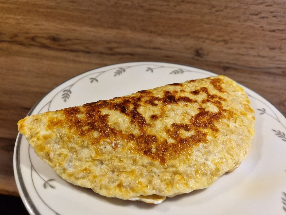 Мой фаворит на завтрак - овсяноблин. Так еще и вкусный завтрак, ну и очень быстрый завтрак! Быстро, просто и очень вкусно. Начинка может быть разной: бекон, сыр, рыба, овощи, да в общем-то любая! А еще говорят, что ПП-завтрак. Но я не специалист, утверждать не буду. Нам понадобится Яйцо, 1 шт. Молоко, 3 ст.ложки Овсянка, 3 ст.ложки, старайтесь не использовать хлопья быстрого приготовления. Соль по вкусу Начинаем готовить Яйцо, молоко и овсянку взбиваем в одной посуде, солим по вкусу. Можно оставить минут на 10, чтобы овсянка размякла. Я так не делаю)) В это время разогреваем сковороду. Я добавляю одну каплю растительного масле на сковороду. Способ приготовления похож на приготовление обычных блинчиков. Вливаем наше тесто на разогретую сковороду (лучше если она будет с антипригарным покрытием). Если овсянка сбилась в один бок, распределите ее равномерно по всей сковороде. Обжариваем минуты 2 на среднем огне. Смотрим, чтобы не пригорало. Аккуратно переворачиваем и продолжаем обжариват