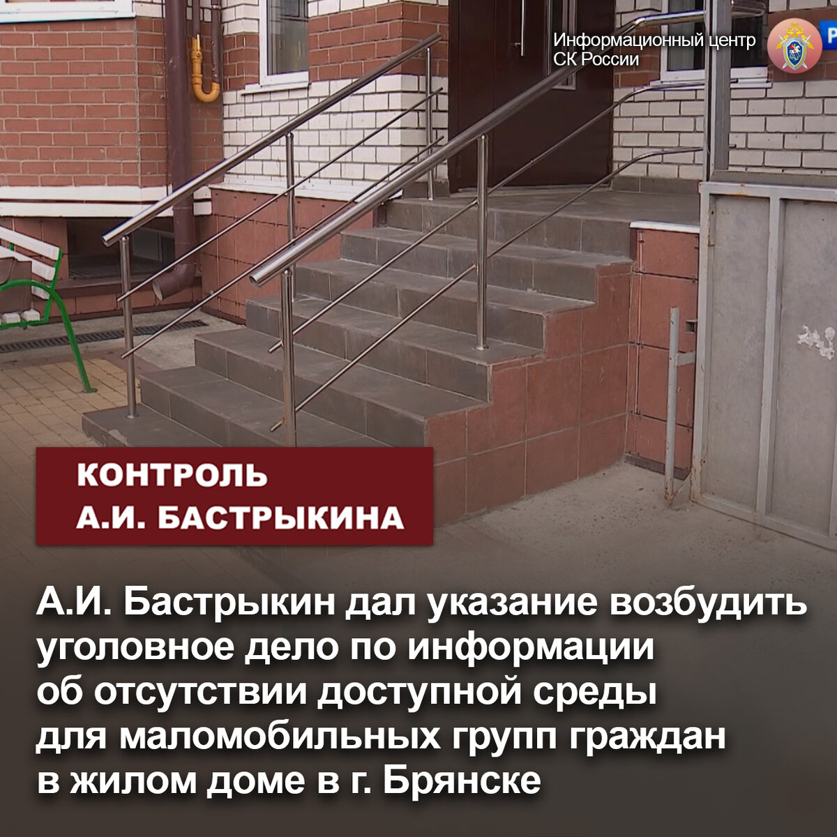 А.И. Бастрыкин дал указание возбудить уголовное дело по информации об отсутствии доступной среды для маломобильных групп граждан в жилом доме в г. Брянске