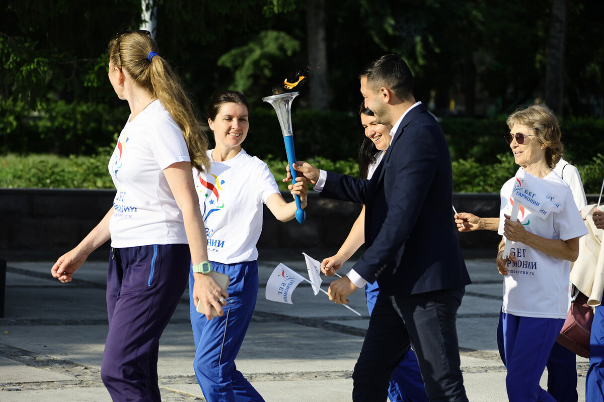 Международная факельная эстафета «Бег Гармонии» прошла в Новосибирске. Участники мероприятия зарядились энергией от Вечного огня на Монументе Славы и продолжили свой длинный путь по России.