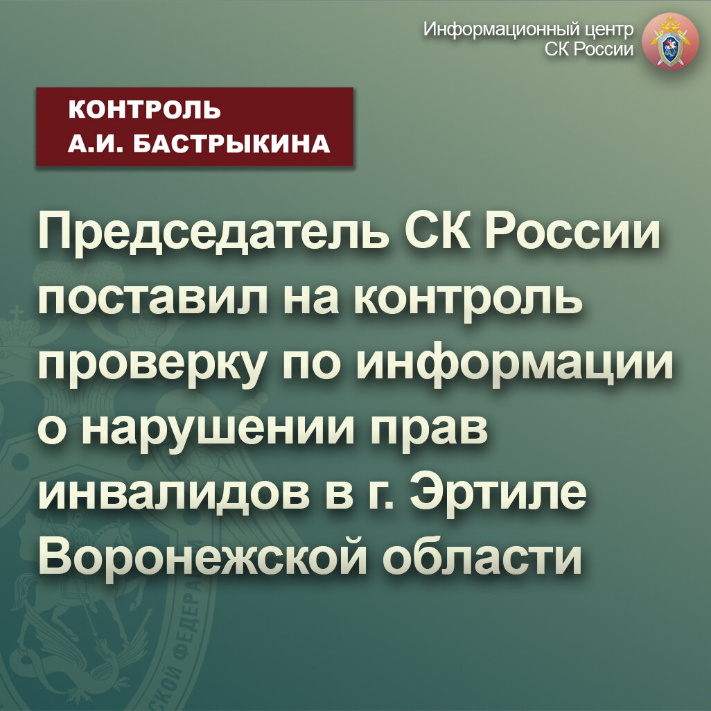 Председатель СК России поставил на контроль проверку по информации о нарушении прав инвалидов в г. Эртиле Воронежской области