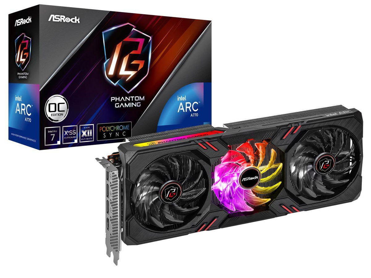 Производитель ASRock официально представил новую видеокарту Intel Arc A770 с объёмом памяти в 16 ГБ из линейки Phantom Gaming. Карточка работает на частоте 2200 МГц, имеет два 8-пиновых разъема питания и предлагает множество опций для интегрированной подсветки RGB. Видеокарту сравнивают с RTX 3060TI 8GB, в различных играх на максимальных настройках графики показатели обоих конкурентов примерно равны: Правда, в GTA 5 видеокарта от Intel не вывозит и работает на максимум, из-за чего средний FPS равняется 47, в то время как 3060TI выдаёт целых 91 FPS.
