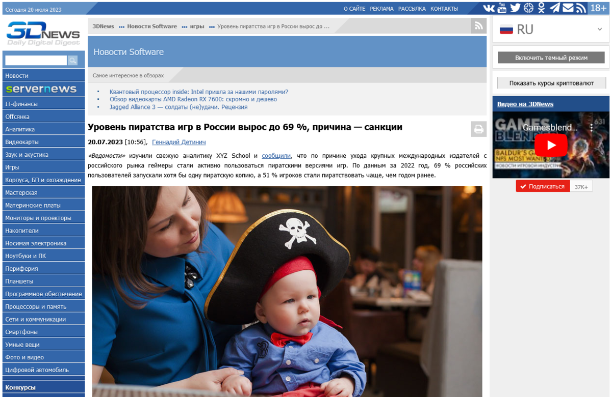 В сети появилась новость: Уровень пиратства игр в России вырос до 69 %, причина — санкции