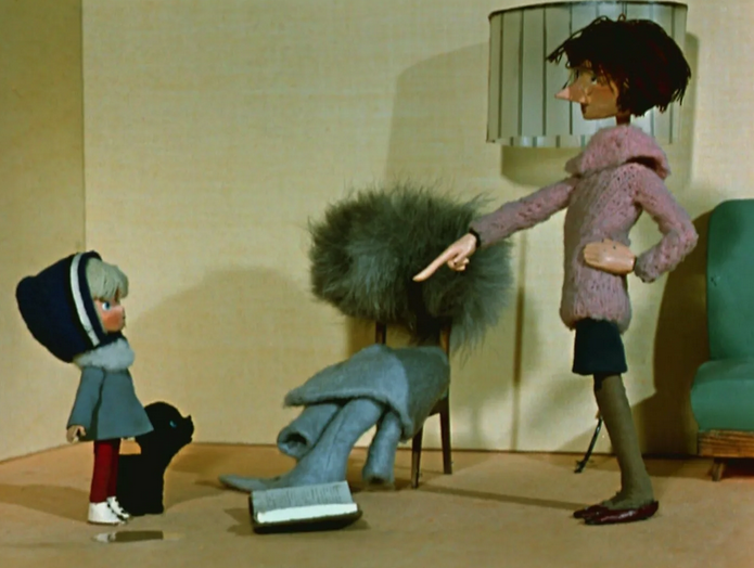 Мультфильм "Варежка"- вызывает ли он грусть-печаль у ребенка? Если у кого-то и вызывает, то у взрослого. В детстве мультфильм "Варежка" относился к тем, которые хотелось бы поменять на другой мультфильм, так как, во-первых, он был кукольный, а во-вторых, сюжетец там, скорее, для взрослой аудитории. Да и не говорят там. То ли дело "Ну, погоди!" или "Простоквашино". Живет девочка, у которой нет собаки. Мама не разрешает заводить девочке собаку, так как у мамы нет времени возиться с домашним питомцем. И дочерью. А у соседей есть собака. И щенок. Девочка просит щенка, но щенок ее подставляет - делает лужу не там, где положено. Девочка гуляет во дворе и видит, как ребятишки играют со своими собаками. И тогда девочка просто представила, что ее варежка это и есть собачка, которую можно водить за ниточку будто бы за поводок. Нам, конечно, жалко девочку. Но дальше не совсем понятно - мы как бы видим картину глазами девочки. Она ведь не просто гуляет с варежкой, она ведет эту псевдособачку