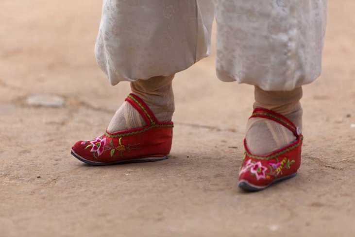 До начала-середины ХХ века женщины в Китае были вынуждены уродовать свои ноги ради того, чтобы быть желанными и выйти замуж. Эта чудовищная традиция настолько долго существовала в жизни Китая, что с корнями вросла в культуру страны. Откуда же берет своё начало это зверство? Одна из теорий гласит, что у одной из наложниц императора Сяо Баоцзюань были крошечный ножки. Она часто танцевала босиком на зольном помосте, украшенном жемчугом, где были изображены лотосы. Правитель был настолько восхищён, что воскликнул: «От её прекрасных ножек распускаются лотосы!». С того времени забинтованную и деформированную женскую ножку называли «золотым лотосом», она считалась первым признаком женственности и чувственности, а также подчеркивали слабость и хрупкость женского пола. Идеальная нога не могла быть длиннее 7 сантиметров. Тем самым, женщина становилась задолжницей своего тела, не имела возможности свободно передвигаться, становилась «рабыней» своего мужчины. Бинтовать начинали в возрасте 5-