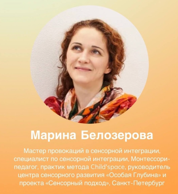 С10 июня ⠀ 110.00, тема: «Диагностика детей с нормотипичным развитием» ⠀ Ухтомская, 41 — Глухов Вадим Репина, 80 — Белозёрова Марина Металлургов, 52А — Дудник Марина ⠀ 014.00, тема «Работа сенсорного специалиста с детьми с ДЦП» ⠀ Ухтомская, 41 — Никитина Ольга Репина, 80 — Дубровина Нина Металлургов, 52А — Царева Надежда ⠀ 11 июня ⠀ и10.00, тема: «Работа сенсорного специалиста с детьми с РАС» ⠀ Ухтомская, 41 — Глухов Вадим Репина, 80 — Дудник Марина Металлургов, 52А — Коптелова Ирина ⠀ ю14.00, тема: «Написание заключений» ⠀ Ухтомская, 41 — Никитина Ольга Репина, 80 — Царева Надежда Металлургов, 52А — Белозёрова Марина ⠀ н12 июня ⠀ Единая площадка для всех участников —Металлургов, 52А ⠀ я10.00 — тема: «Работа с родителями». Спикер: Белозёрова Марина 12.00–12.30 — кофе-брейк 12.30 — тема: «Игровой подход в сенсорной интеграции». Спикеры: Надежда Царева, Марина Дудник 14.30-15.30 — обед ⠀15.30-17.30 — тема: «Речь и сенсорная интеграция». Спикер: Ирина Коптелова. 17.30 — выдача удостовере