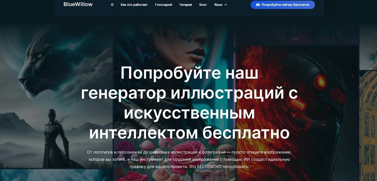 Сервис BlueWillow — аналог Midjourney, но его в отличие от Миджорни можно использовать бесплатно. BlueWillow является агрегатором многих известных моделей (Midjourney, Stable Diffusion и др.).