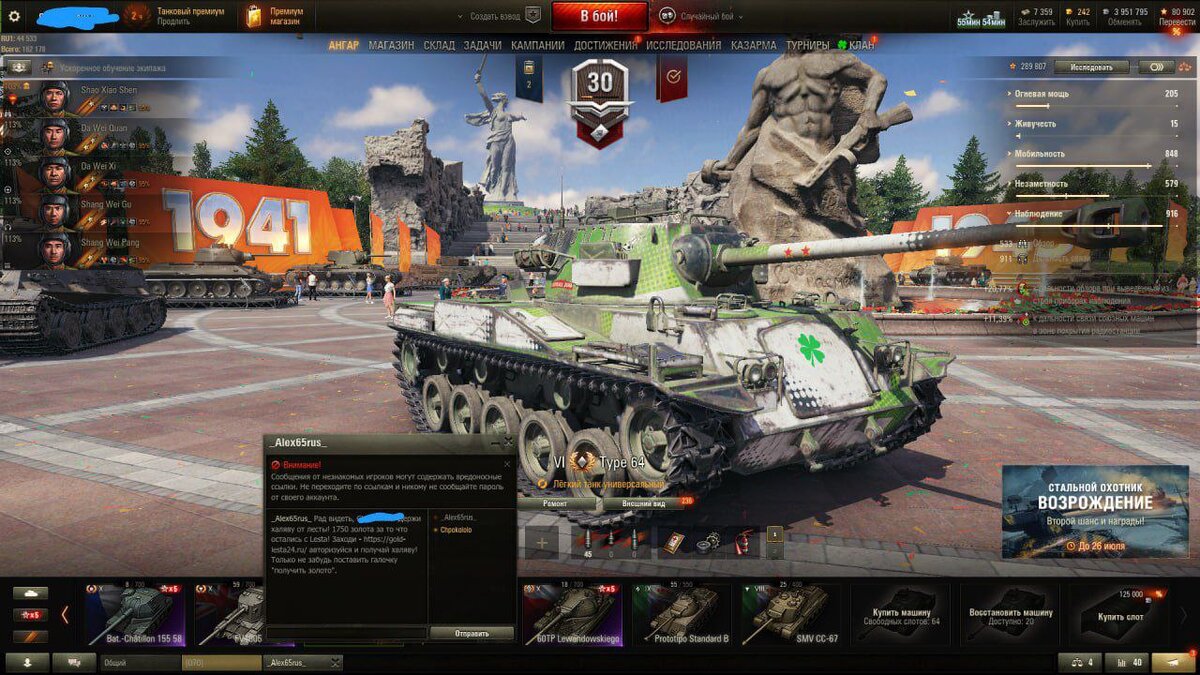 всё чаще стали приходить сообщения с мотивацией пройти на сайт леста, но то не официальный сайт Lesta Сообщения на картинках. В сообщении уверяют что получи мол определенное количество голд, пройдя на сайт по указанной ссылке! Конечно же там необходимо ввести свои данные от аккаунта? чтобы начислилась премия. Но я уверен после ввода логина и пароля, ничего не произойдет кроме того, что Ваш аккаунт будет украден, Все танки проданы, игровая валюта переведена куда нибудь. А возможно что еще хуже, похищенные данные будут проданы каким нибудь прохиндеям мошенникам! Так что я, как и администрация сайта, не рекомендуем и даже настаиваем на том, чтобы Вы не переходили по неизвестным ссылкам. Ведь информация о подарках, премиях и т.д. своевременно публикуется на заставке при входе в игру! Будьте бдительны и крайне внимательны! Тогда все у Вас получится... Да и подпишитесь, Вам не трудно, а нам приятно!