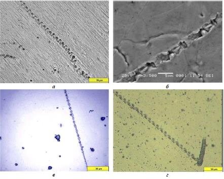 Изучение структуры материалов (Be, Ti, Fe, Cu, W) после воздействия периодического разряда в потоке жидкости выявило присутствие в образцах прямолинейных и криволинейных каналов, в некоторых случаях, пронизывающих образцы по всей толщине, а на поверхностном слое — протяженных нитевидных объектов, обладающих высокой прозрачностью. В работе отмечается, что «… при определенных режимах разряда наблюдается образование прямолинейных ветвящихся каналов значительной протяженности, которые с достаточно большой степенью вероятности могут быть отождествлены с так называемыми флюксами, представляющими собой линейную цепочку нуклонов. Наблюдение подобных объектов возможно благодаря наличию окружающей их светящейся зоны, состоящей из частиц, компенсирующих суммарный заряд такой ядерной нити».
