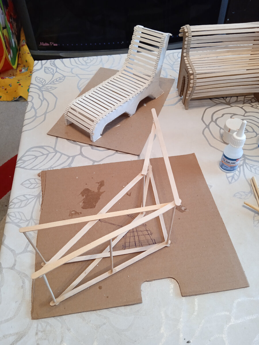 Остались деревянные палочки. Решила сделать ещё один шезлонг. Ведь, когда погода направится, и мы поедем отдыхать, то со мной как минимум поедут две куклы - он и она (не знаю пока кто). Поэтому второй шезлонг нужен. Но делала его по-другому. Более легкую конструкцию с основой из тех же палочек. И вот так получилось. Этот шезлонг получился чуть шире и длиннее. У него другая форма и угол сидения. Он хорошо подойдёт парню. Может кому-то понравится такая идея. Буду рада, если эта конструкция кому-то поможет в создании шезлонга для отдыха куклам. А на этом всё. Пишите, творите, заходите на мою страничку.