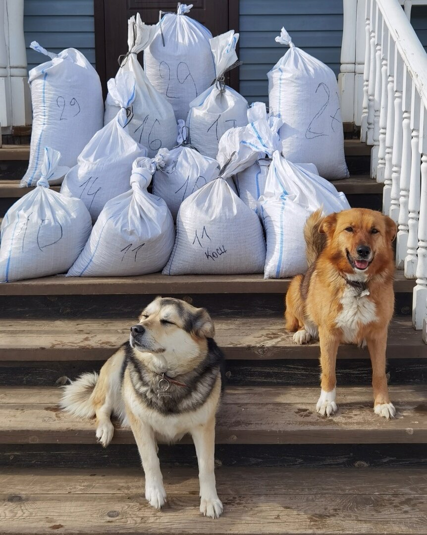 Сейчас позвонила Наташе — волонтёру, которая привозит нам сушку, она попытается срочно достать пару мешков. Если нет, то надо покупать на Озоне, а этого бы не хотелось, потому что там дороже в два раза, чем привозит Наташа.