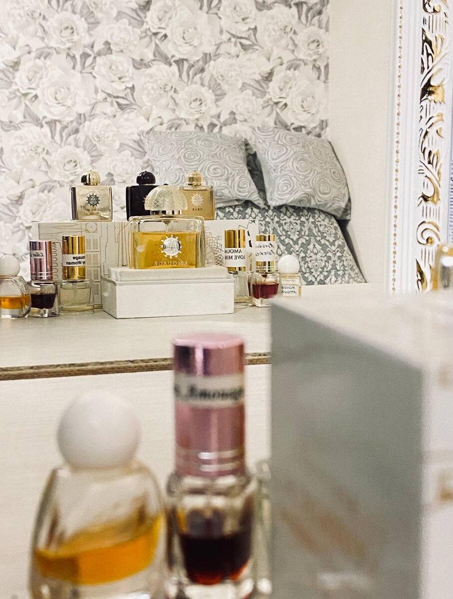 И наконец-то мы дошли до коллекции амуажей. Попробую оставить отзывы в двух словах на каждый: Lyric - тягучая и смолистая, розово-винная композиция с оммажем в сторону Samsara. Всегда думала, что он самый минорный в коллекции, но сейчас звучит удивительно хорошо, спокойно и без драмы. Ubar - очень много животины (при этом сдержанной и именно парфюмерной, без уклона к натурализму) и немного белых цветов. Для тех, кто умеет с достоинством носить сложную "классическую" парфюмерию. Красив до замирания сердца. На руке постепенно начинает появляться мед и лимонные цветы. (надо бы маме его офлаконить в полноразмер) Gold - ретро-альдегиды, из мыльно-восковой завесы которых выглядывает животинка. Вслепую отнесла бы к винтажке и не стала бы разбираться, так как похоже на многие альдегидные ароматы старой школы. Honour ext - мясистые белые холодные цветы без животных аспектов, посыпанные перечным пеплом. Сдержанный, спокойный и даже пыльный. Lilac Love - шоколадно-сиреневая тяжелая мускусная комп