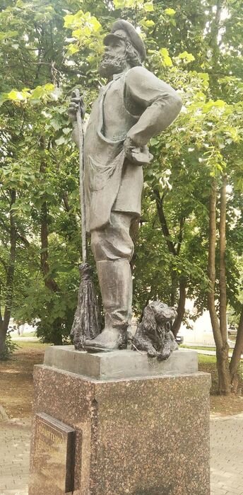Люблю я, грешная, разные скульптуры и интересные памятники. Особенно припрятанные в тенистых двориках и о которых узнаешь случайно, изучая карту. Один из таких: памятник дворнику в одном из скверов Балашихи, на улице Ленина, 45. Монумент выполнен из бронзы и изображает фигуру дореволюционного бородатого дворника в фуражке, фартуке и с метлой. У его ног притулилась маленькая собачка - дворняжка. Насколько я помню историю, в те времена профессия дворника была почетна и уважаема. Автор памятника – Игорь Черноглазов, скульптор из Владимира, хотел напомнить всем прохожим о том, как важна чистота на улицах родного города. Не сорите, короч. )) Спасибо за внимание! Дайте знать❤️, если было интересно!🌹Подписывайтесь, ставьте лайки❤️, делитесь публикацией, а я ещё чего-нибудь напишу! #балашиха #город #памятник #дворник #собака #подмосковье