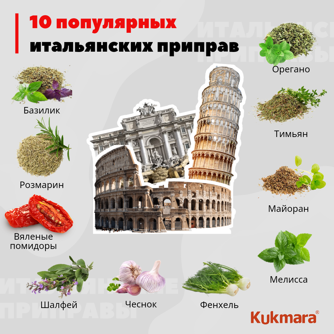 Итальянские травы считаются одними из самых ароматных и сбалансированных в мире. Сегодня расскажем о 10 самых популярных из них. Используя приправы в повседневном рационе, вы сможете создавать более вкусные и изысканные блюда.❤ ● Базилик – ароматная приправа со свежими мятными нотками, которую можно добавлять практически ко всем блюдам, как в свежем, так и в сушеном виде. Идеально сочетается с помидорами и моцареллой, мясом и даже выпечкой. ● Розмарин – это выразительная пряность с сильных хвойным ароматом и приятным островатым вкусом, которую используют для придания особого вкуса блюдам из мяса и птицы, добавляют в супы и маринады. ● Сушеные (вяленые) томаты – приправа, которая идеально дополнит салат, суп или соус, придаст блюдам приятную кислинку и пикантность. ● Шалфей – пряность имеет цветочный и пряный вкус с горчинкой, угадываются сладкие и эфирные нотки. Им сдабривают начинку для колбас и сырных пирогов. ● Чеснок – используют как в сушеном, так и в свежем виде, маринуют, туша