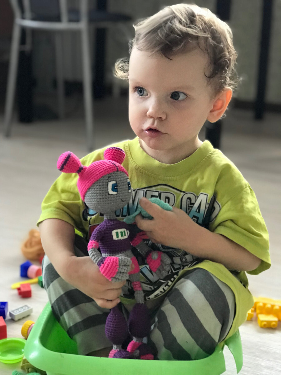 Дорогие друзья, всем хорошего настроения . Сегодня покажу чем занималась последние несколько дней. Идея пришла давно, реализовать получилось только сейчас. Игрушка робот для девочек . Милая глазастая и добрая . Связана из полухлопковой пряжи , рост 30 см Проволочный каркас позволяет менять положения . Зайка 8 см, лапки на нитяном креплении . Глазки и батарейка у робота вышиты и раскрашены акриловыми красками . Дочка оценила новые игрушки 🥰