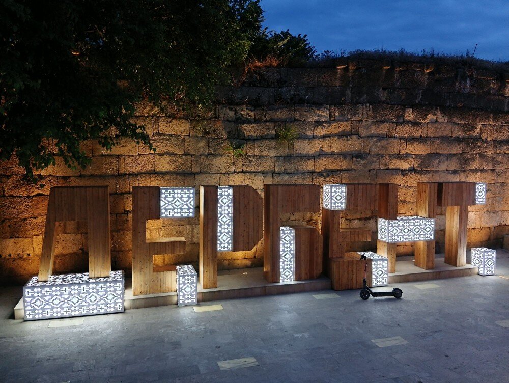 Вернее — стенЫ. Две стены, южная и северная, спускавшиеся от крепости Нарын-Кала и когда-то уходившие на 500 метров в море — наиболее сохранившийся памятник древнеперсидского фортификационного зодчества. За это стена Дербента внесена ЮНЕСКО в список Всемирного наследия. Сейчас стену (Северная сохранилась почти полностью и тут я буду показывать в основном её) холят и лелеют, украшают и вдоль неё устроены шикарные прогулочные зоны. Мы ходили гулять вдоль Стены все три наших вечера в Дербенте — не потому что больше некуда пойти, нет. Во-первых, это красиво! Двойная Дербентская стена была построена во времена Сасанидов, и перекрывала Каспийские ворота в Дербенте. Собственно топоним «Дербент» означает «узкие врата», и стена закрывала эти «ворота» полностью — от морского берега до крепости Нарын-кала. Стена на протяжении 15 веков использовалась в оборонительных целях персами, тюрками, арабами и монголами (ильханы, Тимуриды). Длина стены составляет 3600 метров. Южная и северная стены идут пар