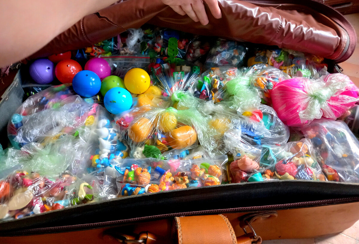 Всем доброго времени суток друзья! Пришло время пополнить мою киндер коллекцию.Набрался пакетик с новинками) Достаю свой тяжёлый чемодан с игрушками. Тут все киндеры и другие мелкие игрушки,которые я собираю с детства 🙂 Коллекция начала собираться ещё в 90-ых годах.Рада, что почти все игрушки уцелели с того времени.Я их бережно хранила и перевозила с собой во время переездов. Из детства киндеров был целый целофановый пакет. Потом игрушки приходили из разных источников в коллекцию:покупались,менялись,принимались в дар🙂 Покажу немного того, что сейчас имеется в чемодане👇 Бегемотики и Дино Слоники,лягушата,лисята,пингвины и белки. Не все серии полные. Акулы и львята Другие не менее интересные серии Сейчас в коллекции есть старые и современные серии. Сегодня мы с вами разбираем пакет в котором купленные игрушки и игрушки подаренные подругой) Среди игрушек есть повторки.Отложу их отдельно.На обмен😉 Всё вместе👇 Друзья,а вы сохраняете игрушки из шоколадных яиц? Присылайте фото своих