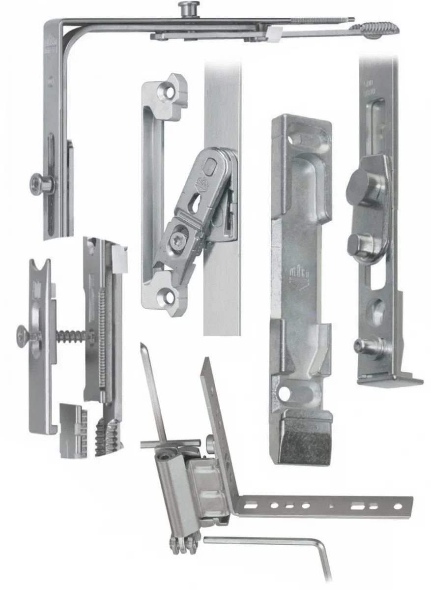 Часть 3 1. Пластины MAСO с фиксирующими зубцами для соединения Исключительным и передовым преимуществом фурнитуры MACO являются соединительные пластины, которые не только обеспечивают зацепление, благодаря гребенчатой внутренней поверхности, но и надежно крепятся саморезом к створке! Работает это так: благодаря специальному изготовлению, они отлиты со специальными зубцами; Эти зубцы фиксируются во время откидывания, в отверстиях фурнитуры, которые находятся сбоку; В это же время, с другой стороны самой пластины срабатывает защелка! Такое крепление элементов фурнитуры MACO позволяет полностью исключить смещение или потерю пластины, соединяющей механизмы, и произвольное отсоединение механизмов фурнитуры во время эксплуатации. Это обеспечивает надежную и длительную эксплуатацию изделия и позволяет избежать его поломки! 2. Микропроветривание в стандартном исполнении Функция «микровентиляции» MAСO в окне обеспечит быстрый приток свежего воздуха без сквозняка. Достаточно повернуть оконную ру