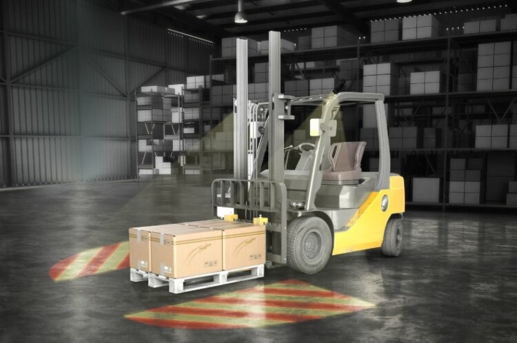Российская компания Safety Rays создала систему световых проекторов для обозначения зоны работы складской техники. Компания Safety Rays, российский разработчик световой промышленной демаркации и вспомогательных систем безопасности на предприятиях, создала линейку световых проекторов для обозначения зоны работы складской техники, в частности, вилочных погрузчиков. Проекторы обеспечивают безопасный световой контур вокруг погрузчика, что позволяет предупредить несчастные случаи на складах, где есть риск столкновения людей и движущейся техники. Что приводит к ЧП в зоне работающей складской техники? Крайне опасным является движение задним ходом, потому что скорость машины такая же высокая, как при движении вперед. Оператор не всегда может среагировать на возникшую помеху. Система безопасности проецирует световой сигнал сбоку, сзади и спереди погрузчика. Тем самым создаются границы безопасности, пересечение которых может привести к аварии. Маленький проектор мощностью 12 вольт создает изобра