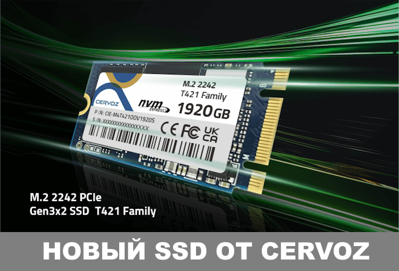 В сети интернет появился анонс от производителя Cervoz. Ею был анонсирован SSD разновидности T421. Это устройство предназначено для использования в таких категориях как: