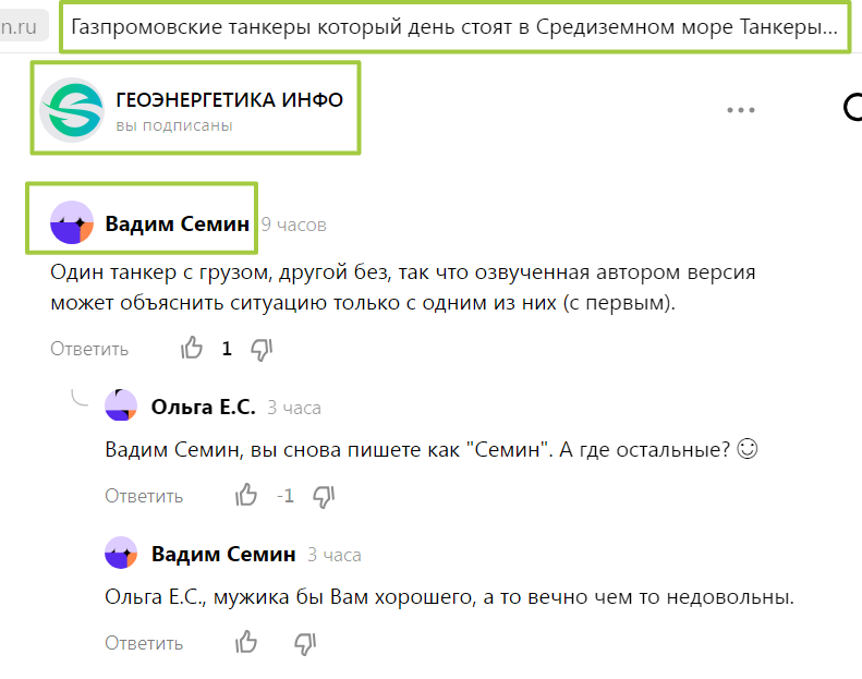 Всем, кто будет читать, здравствуйте. Этот комментатор пишет и на канале "ГЕОЭНЕРГЕТИКА", и на канале "Древний Кавказ". Наверняка еще где-то. Тут скрины вместо тысячи слов. Как "Рафаэлло". Или из какой там рекламы эта фраза? 😊 Первая беседа началась в 16:26, вторая в 16:40. То есть шли эти две переписки параллельно. Можно, конечно, еще пособирать комментов этого "глашатая правды и справедливости", как он мне сам как-то свое кредо описАл, но, полагаю, уже вполне достаточно. В общем, его это аккаунты (того, кто кнопочки нажимает под ником "Вадим Семин") или не его, разница небольшая. Суть в том, что и тот, и тот морaльнo yщеpбны. Всем здоровья и удачи.