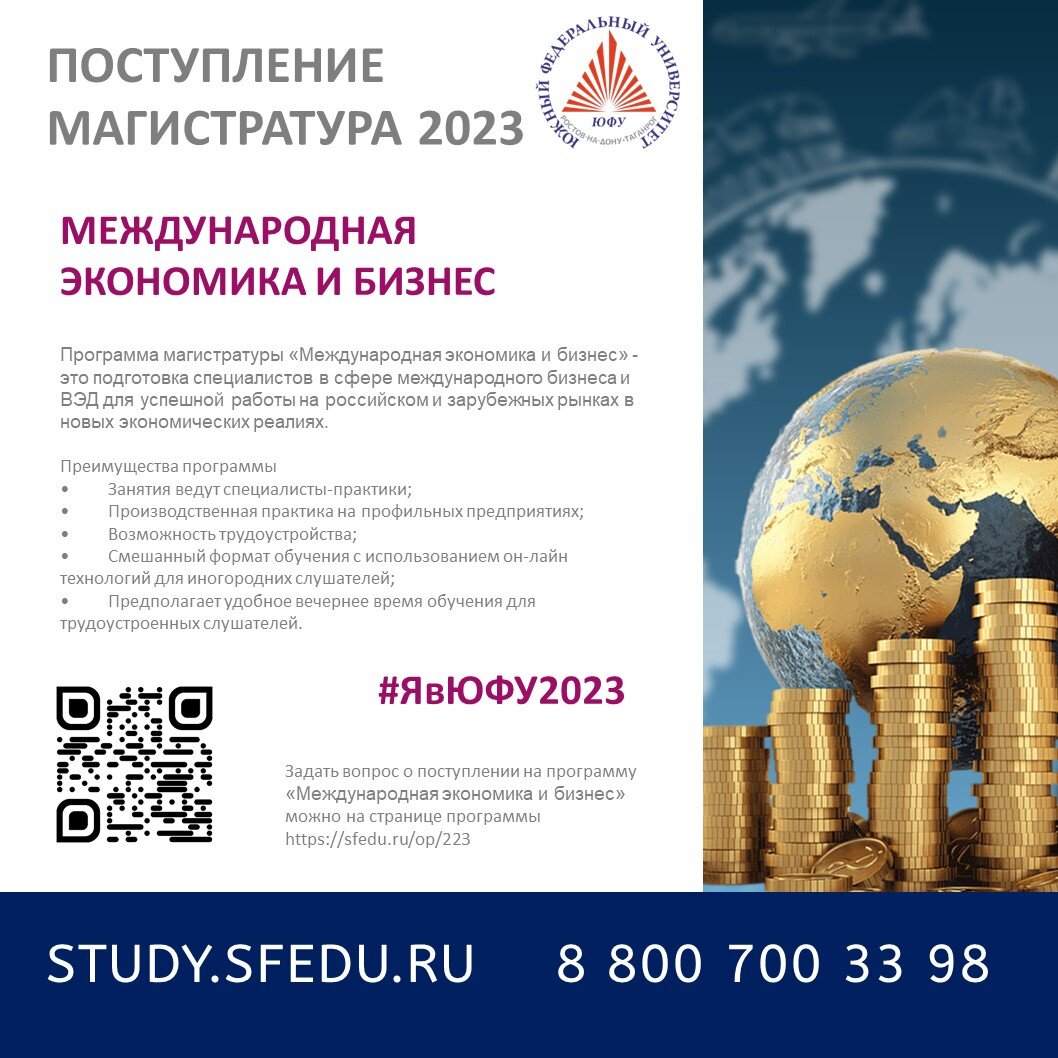 Программа магистратуры «Международная экономика и бизнес» - это подготовка специалистов в сфере международного бизнеса и ВЭД для успешной работы на российском и зарубежных рынках в новых экономических реалиях. Содержание программы направлено на формирование у слушателей профессиональных компетенций в сфере ВЭД: · умение вести деятельность компаний на международных рынках в сложных геополитических реалиях, критически оценивать результаты и внешние риски в сфере ВЭД; · навык разработки стратегии и планов развития ВЭД экономических субъектов на разных уровнях хозяйствования; · способность осуществлять мониторинг конъюнктуры мировых рынков товаров и факторов производства с целью подготовки проектных решений; · способность заключать внешнеторговые контракты и вести переговоры с зарубежными партнерами с учетом специфики стран; · анализировать внешнеторговые конкурентные преимущества компаний на международных рынках. Требования к абитуриенту: высшее образование (бакалавр или специалист) в люб