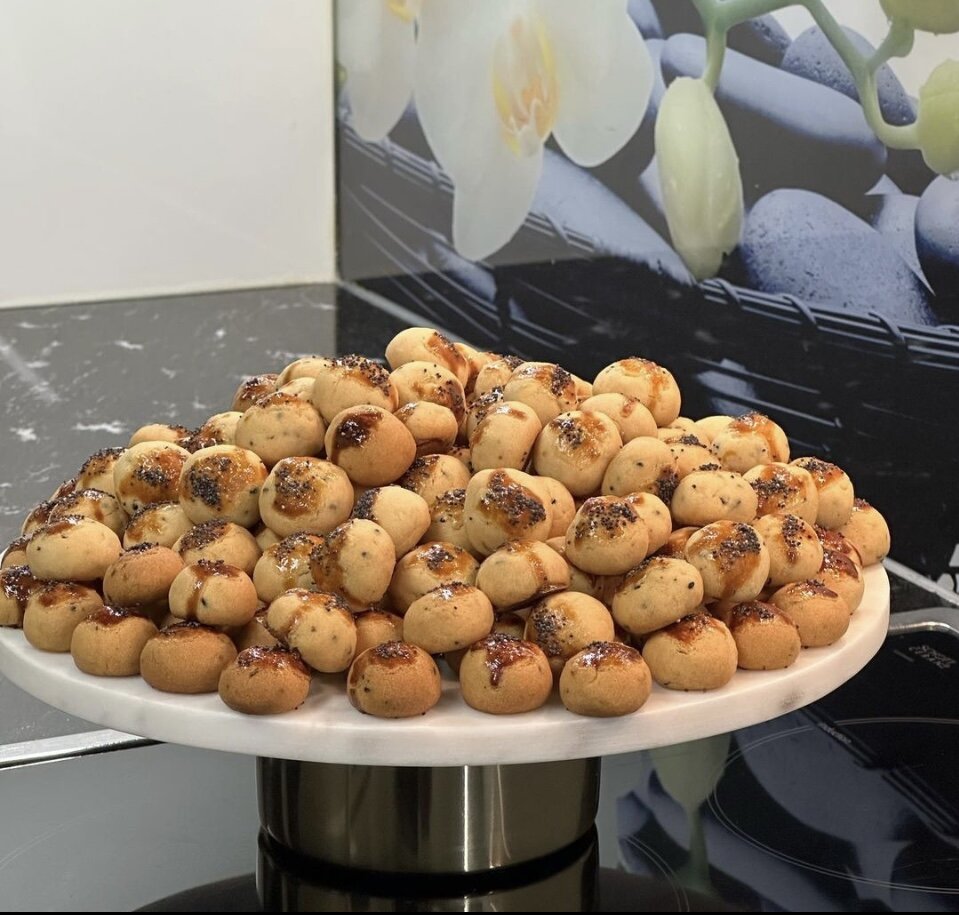 Всех приветствую! Сегодня решила показать один вариант крошечного перекуса или маленькие печенья по домашнему. Один из моих любимых рецептов, к которому мне приходится часто прибегать для подачи с чаем или кофе для моих гостей. . Печенье с черным кунжутом 🍪 Мои мерные стаканы для воды на 250 мл и чайный стакан 125 мл. Из этих пропорций выходит 2 противень печенья. . Ингредиенты: . Процесс приготовления: В миску со сливочным маслом добавляем растительное масло , яичный белок, сахарную пудру, разрыхлитель, мед, соль, черный кунжут в миску, хорошо смешайте их и замесите красивое тесто, медленно добавляя муку. Тесто должно быть не слишком мягким и не слишком жесткий. Затем беря маленькие кусочки теста скатываем крошечные шарики, Затем выкладываем готовые шарики на противень , смазываем желтком и в духовку на 30-40 минут при 170 градусах. Приятного аппетита)