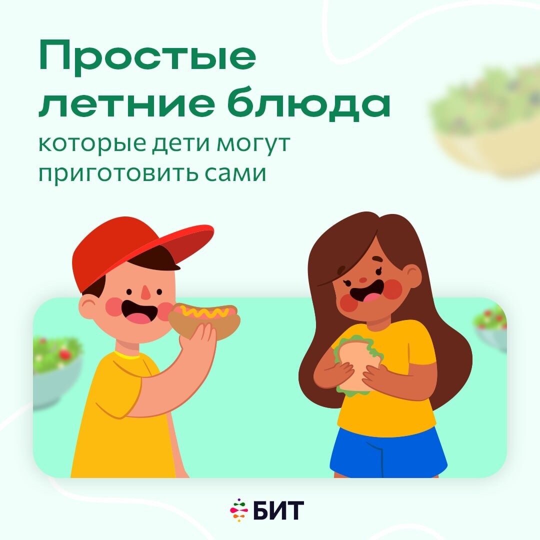 Лето - идеальное время для веселых и творческих занятий, включая кулинарию! Почему бы не воспользоваться этим временем, чтобы научить детей некоторым простым рецептам и развить их навыки самостоятельной готовки? В этом посте мы представим вам несколько легких и вкусных летних блюд, которые дети смогут приготовить сами. Лето - отличное время для развития кулинарных навыков у детей. Предложите им простые и вкусные рецепты, чтобы они могли приготовить свои собственные летние блюда. Это не только увлекательно, но и помогает детям развивать навыки самостоятельности и творчества. Не забывайте поощрять их усилия и наслаждаться вкусными летними блюдами, приготовленными собственными руками. Приятного аппетита!
